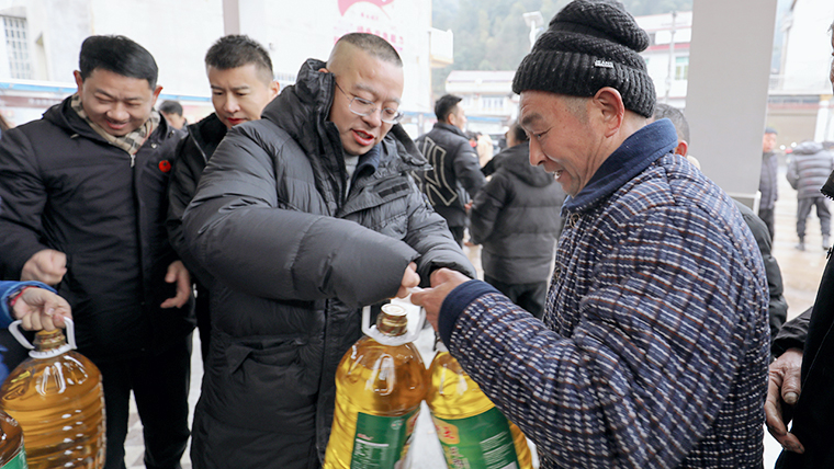 捐贈(zèng)儀式上,綠之韻集團(tuán)總裁、綠之韻公益基金會(huì)理事長(zhǎng)勞嘉,常務(wù)副總裁胡均安,市場(chǎng)營(yíng)銷中心總經(jīng)理戴三省,副總經(jīng)理胡武安,市場(chǎng)營(yíng)銷中心業(yè)務(wù)總經(jīng)理趙蕾,綠之韻集團(tuán)戰(zhàn)略委委員呂秀玲、易園翔、彭銘、范林;綠之韻集團(tuán)策略委委員黃翔、孫彩虹;綠之韻下屬公司管理團(tuán)隊(duì)龍贊、宋貴、高尚、張浩哲、馬郡成、趙建銘等領(lǐng)導(dǎo)分別上臺(tái)為村民發(fā)放愛心物資和新春慰問金。