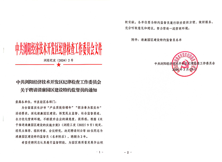 會(huì)前,與會(huì)人員集中觀看警示教育專題片。瀏陽經(jīng)開區(qū)黨工委委員、紀(jì)工委書記何六生作黨風(fēng)廉政建設(shè)工作報(bào)告,瀏陽經(jīng)開區(qū)黨工委副書記羅其勝宣讀《關(guān)于聘請(qǐng)清廉園區(qū)建設(shè)特約監(jiān)督員的通知》。瀏陽經(jīng)開區(qū)黨工委書記鄭以仁為清廉園區(qū)建設(shè)特約監(jiān)督員頒發(fā)聘書。綠之韻集團(tuán)黨委書記劉云被聘任為瀏陽經(jīng)開區(qū)清廉園區(qū)建設(shè)特約監(jiān)督員。