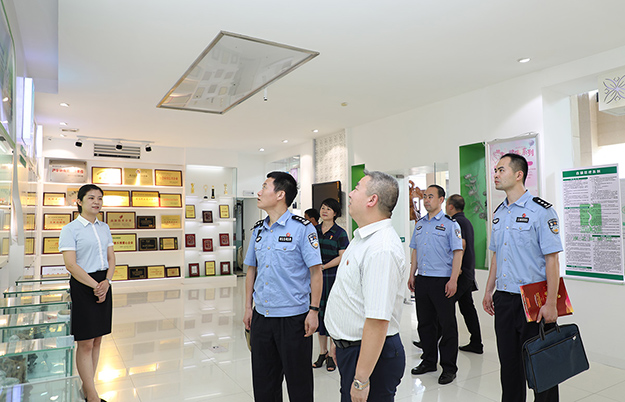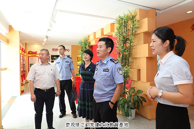 2019年6月28日,長(zhǎng)沙市公安局機(jī)關(guān)紀(jì)委書記王海清、瀏陽(yáng)市局督察大隊(duì)副大隊(duì)長(zhǎng)尋延亮、瀏陽(yáng)經(jīng)開區(qū)公安分局副局長(zhǎng)彭治國(guó)、瀏陽(yáng)市洞陽(yáng)派出所所長(zhǎng)朱慶超一行蒞臨綠之韻集團(tuán)調(diào)研指導(dǎo)。長(zhǎng)沙市公安局特邀形象監(jiān)督員、綠之韻集團(tuán)副總裁胡均安,綠之韻集團(tuán)黨委書記劉云,黨委副書記許達(dá)仲等陪同調(diào)研。