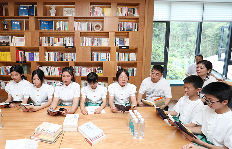 為引導(dǎo)青少年學(xué)生傳承和弘揚(yáng)中華民族優(yōu)秀傳統(tǒng)文化,增強(qiáng)對國學(xué)經(jīng)典的認(rèn)同感和自豪感,營造濃厚讀書氛圍,2024年5月23日,安化大橋?qū)W校校長黃軍帶領(lǐng)優(yōu)秀師生代表在致公·綠韻書屋舉行研學(xué)活動暨經(jīng)典誦讀主題讀書分享會。安化縣人大常委會黨組書記、主任陳飛燕,安化縣人民政府黨組成員、副縣長莫超,湖南省慈善總會副會長、綠之韻集團(tuán)董事長胡國安,安化縣人大代表、綠之韻集團(tuán)常務(wù)副總裁胡均安,安化縣政協(xié)委員、綠之韻集團(tuán)副總經(jīng)理胡武安,綠之韻集團(tuán)戰(zhàn)略委委員呂秀玲,瀏陽市政協(xié)委員、湖南省綠之韻公益基金會秘書長蔣文參加讀書會活動。