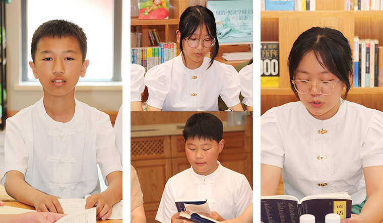 與經(jīng)典同行,和圣賢為伍。讀書分享會上,在老師的帶領(lǐng)下,同學(xué)們對《論語》中的經(jīng)典篇章,通過誦讀、解析、釋義,互相交流并分享自己的感受,共同走進(jìn)孔子的精神世界。讀書會高潮,同學(xué)們共同誦讀《學(xué)而》篇章,“學(xué)而時(shí)習(xí)之,不亦說乎?有朋自遠(yuǎn)方來,不亦樂乎?人不知而不慍,不亦君子乎?”“吾日三省吾身:為人謀而不忠乎?與朋友交而不信乎?傳不習(xí)乎?”……同學(xué)們的朗朗讀書聲環(huán)繞在整個(gè)綠韻書屋。隨后,讀書會特邀嘉賓胡武安、呂秀玲、蔣文分別與同學(xué)們做《論語》讀書交流和人生故事分享,充分鼓勵(lì)同學(xué)們通過讀書會這樣的方式閱讀經(jīng)典,對話先賢,感受中華傳統(tǒng)文化的魅力,獲得人生成長的力量。