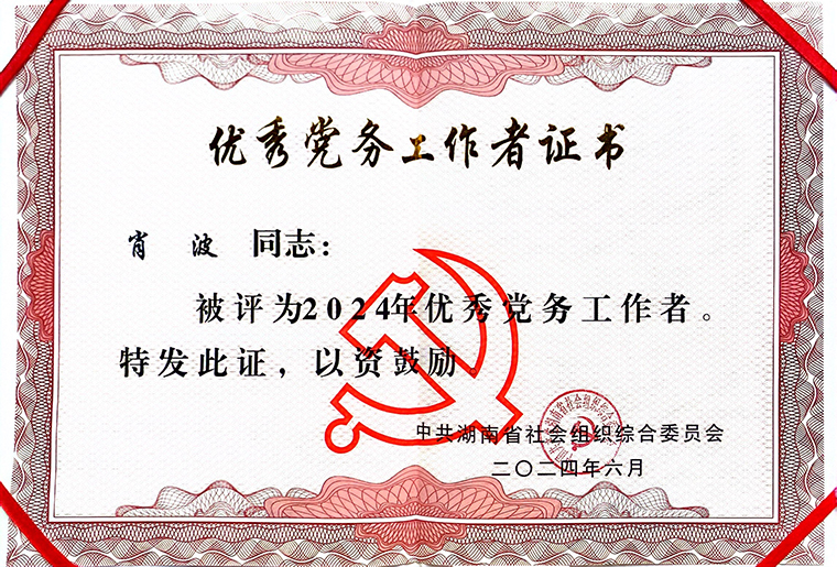一直以來(lái),在湖南省社會(huì)組織綜合黨委和省民政廳社會(huì)組織管理局的關(guān)心與支持下,中共湖南省綠之韻公益基金會(huì)黨支部始終堅(jiān)持以習(xí)近平新時(shí)代中國(guó)特色社會(huì)主義思想為指導(dǎo),強(qiáng)化政治引領(lǐng)作用,不斷推進(jìn)黨支部的標(biāo)準(zhǔn)化、規(guī)范化建設(shè),將黨建工作與基金會(huì)發(fā)展同謀劃、同部署、同實(shí)施,實(shí)現(xiàn)了黨建與基金會(huì)發(fā)展的雙促進(jìn)、雙提升。肖波書記表示,此次獲得“優(yōu)秀黨務(wù)工作者”稱號(hào),既是對(duì)個(gè)人榮譽(yù)的表彰,更是對(duì)支部工作的肯定。我們將以此次表彰為起點(diǎn),進(jìn)一步貫徹落實(shí)黨的二十大精神,樹牢“圍繞發(fā)展抓黨建、抓好黨建促發(fā)展”理念,不斷探索黨建工作新形式和新內(nèi)容,充分發(fā)揮慈善組織黨組織戰(zhàn)斗堡壘和共產(chǎn)黨員先鋒模范作用,持續(xù)助力經(jīng)濟(jì)社會(huì)發(fā)展、鄉(xiāng)村振興和基層治理,推動(dòng)“黨建+公益”創(chuàng)特色、出品牌。