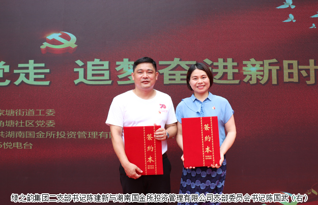 活動(dòng)最后,綠之韻集團(tuán)二支部與湖南國(guó)金所支部舉行了結(jié)對(duì)共建簽約儀式。綠之韻集團(tuán)黨委書記劉云表示,這不僅是一次支部之間的結(jié)隊(duì)共建、互幫互學(xué)活動(dòng),更是一次愛國(guó)主義教育,將熱愛祖國(guó)的種子播撒在每位黨員的心田里,也讓所有的黨員再一次體會(huì)了身為中國(guó)人的驕傲和對(duì)祖國(guó)的深情。未來(lái),兩個(gè)支部可以優(yōu)勢(shì)互補(bǔ),互取所長(zhǎng),在今后的工作與生活中,始終保持黨員的初心,牢記肩頭的使命,一如既往的積極履行黨員的義務(wù)和職責(zé),發(fā)揮黨員的先鋒模范帶頭作用,砥礪奮進(jìn),為實(shí)現(xiàn)“中國(guó)夢(mèng),綠之韻夢(mèng)”做出更大的貢獻(xiàn)!