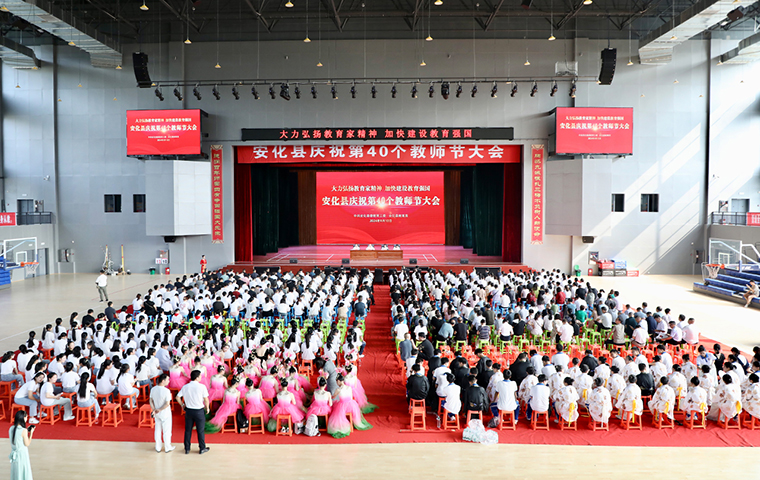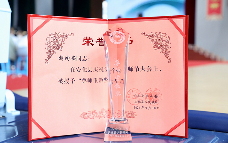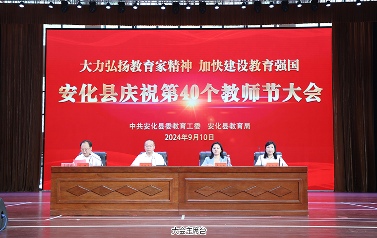 2024年9月10日,安化縣慶祝第40個教師節(jié)大會在縣職業(yè)中專舉行。中共安化縣委副書記、縣委統(tǒng)戰(zhàn)部部長、縣委教育工委書記代虹宇,安化縣人大常委會副主任李艷云,縣人民政府黨組成員、副縣長莫超,縣政協(xié)副主席陳賽男等領導出席會議。安化縣人大代表,綠之韻集團常務副總裁胡均安受邀參加會議,并榮獲“安化縣尊師重教獎”。