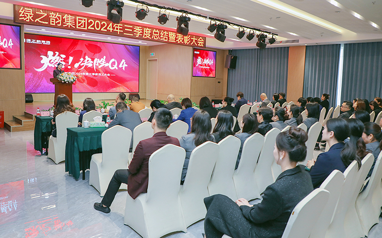 布局謀新,聚力贏戰(zhàn)。10月28日,綠之韻集團2024年三季度總結暨表彰大會圓滿舉行。綠之韻集團董事長胡國安、總裁勞嘉、常務副總裁胡均安攜集團高管及全體員工齊聚一堂,回顧第三季度經營成果,深入分析當前市場新形勢,明確下一階段的工作重點,沖刺四季度,全力打好年終“收官戰(zhàn)”。