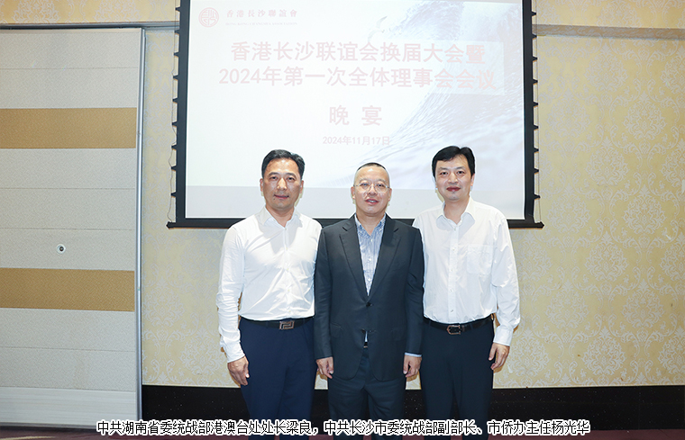 湘港攜手,共譜新篇。2024年11月17日,香港長沙聯(lián)誼會第二屆理事會會議暨2024年第一次全體理事會會議隆重召開。中共湖南省委統(tǒng)戰(zhàn)部港澳臺處處長梁良,中共長沙市委統(tǒng)戰(zhàn)部副部長、市僑辦主任楊光華,長沙市委統(tǒng)戰(zhàn)部港澳處(僑務處)處長趙敏,副處長譚林,二級主任科員王華銘等領導出席晚宴與新一屆理事會成員齊聚一堂,共同見證這一歷史性的重要時刻,奏響湘港合作的嶄新樂章。