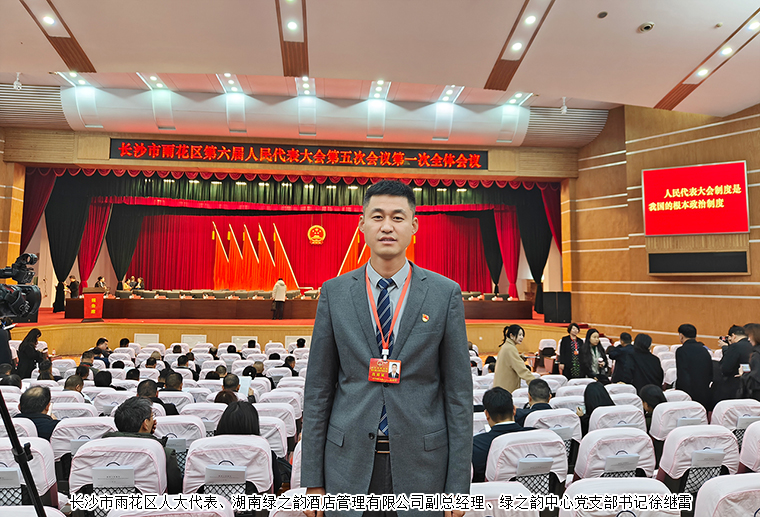 2024年12月25-27日,長沙市雨花區(qū)第六屆人民代表大會第五次會議在雨花大會堂勝利舉行。中共雨花區(qū)委書記黃軍其,區(qū)委副書記、區(qū)人民政府區(qū)長李磊,區(qū)人大常委會主任馮聰龍,區(qū)政協(xié)主席王清政,雨花經(jīng)開區(qū)黨工委書記陳海波等大會主席團成員以及區(qū)委副書記歐陽偉沙,非主席團成員的區(qū)委常委,區(qū)人大常委會歷屆主任,區(qū)政府副區(qū)長,區(qū)政協(xié)副主席,區(qū)法院院長,區(qū)檢察院檢察長等領導參加會議。長沙市雨花區(qū)人大代表、湖南綠之韻酒店管理有限公司副總經(jīng)理、綠之韻中心黨支部書記徐繼雷與來自全區(qū)各條戰(zhàn)線、各個領域的人大代表肩負著全區(qū)人民的期望和重托齊聚一堂,共商雨花高質量發(fā)展大計,共繪全面建設全國一流現(xiàn)代化強區(qū)的美好藍圖。