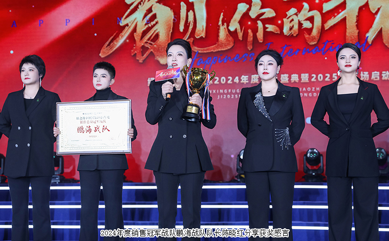 熱血似焰燃戰(zhàn)旗,披荊斬棘馭風行。每一項殊榮的背后,皆是汗水的傾注;每一次勝利的號角,都飽含奮進的熱血。在波譎云詭的市場浪潮之中,他們逆潮而立,踴躍拓展市場疆域,憑借滿腔的熱忱與拼搏的沖勁,展現(xiàn)出綠之韻幸福代言人的卓越風姿。綠之韻國際商學院執(zhí)行院長黎芋成,為“2024年度業(yè)績冠軍戰(zhàn)隊?鵬海戰(zhàn)隊”頒發(fā)榮譽。綠之韻集團運營部執(zhí)行總經(jīng)理、國際商學院常務副院長陳敏,品宣部執(zhí)行總經(jīng)理龍雅鳳為“綠之韻幸福國際 2024 年度全國十強戰(zhàn)隊”——君鼎戰(zhàn)隊、湘中戰(zhàn)隊、眾賀戰(zhàn)隊、力鼎戰(zhàn)隊、玖德戰(zhàn)隊、翼合戰(zhàn)隊、湘北戰(zhàn)隊、福鼎戰(zhàn)隊、123戰(zhàn)隊頒發(fā)榮譽。隨后,獲獎戰(zhàn)隊隊長陳曉紅上臺,誠摯分享了獲獎感言。