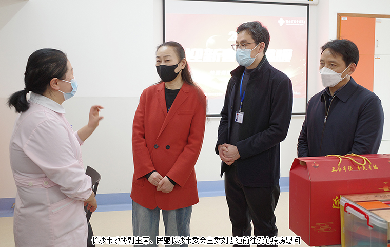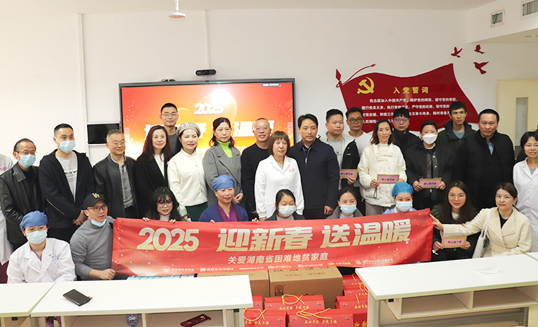 新春將至,年味愈濃。綠之韻公益基金會聯(lián)合湖南省慈善總會、芒果TV、民盟長沙市委會、中國社會福利基金會芒果V基金、民盟開福區(qū)工委等愛心單位發(fā)起了2025“迎新春 送溫暖”關(guān)愛湖南省困難地貧家庭公益活動。1月22日上午,長沙市政協(xié)副主席、民盟長沙市委會主委劉志紅,民盟長沙市委會專職副主委李蘭宏,芒果TV品牌戰(zhàn)略部副總經(jīng)理、芒果公益平臺負責人劉慧,長沙市人大代表、湖南省慈善總會副會長、綠之韻集團董事長胡國安,湖南省政協(xié)委員、綠之韻集團總裁、綠之韻公益基金會理事長勞嘉帶領(lǐng)愛心志愿者一行先后來到中南大學湘雅醫(yī)院、湖南省人民醫(yī)院、湖南省兒童醫(yī)院,給正在進行造血干細胞移植的26名重型地中海貧血孩子送去了愛心慰問金和新春禮包。與此同時,還為全省困難地貧家庭派送了100份愛心慰問大禮包。