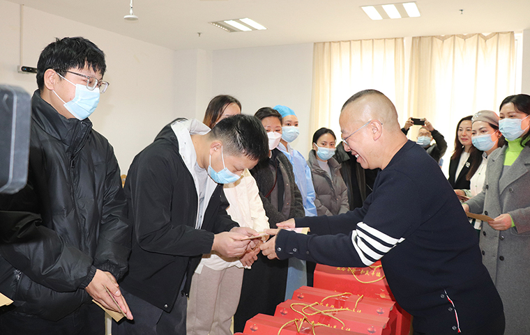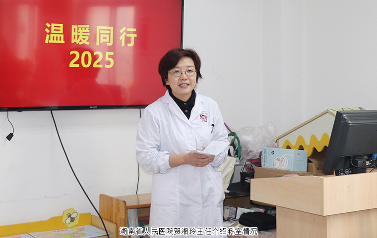 “謝謝大家的關(guān)愛,滿滿的感動,也提前感受到了春節(jié)的溫暖?!毙∮顙寢尲拥卣f道。來自四川的小宇,自2024年4月起便在湖南省人民醫(yī)院接受造血干細胞移植治療,前后花費了二三十萬,由于術(shù)后一直需要定期復查,一家人便租住在醫(yī)院附近,也準備在長沙過年。勞嘉理事長為小宇送上慰問金和親切祝福:“綠之韻公益基金會一直關(guān)注青少年、兒童的健康成長,開展綠+兒童關(guān)愛項目。早在2014年我們就在省人民醫(yī)院建立了綠之韻愛心病房。今天再次來到省人醫(yī),希望能讓這些孩子們感受到社會的關(guān)愛,勇敢地與病魔抗爭,在新的一年里迎來美好的生活?!贬t(yī)院病房里,孩子們稚嫩的笑臉,家長們感激的目光,愛心志愿者們忙碌而熱情的身影,交織成一幅溫暖人心的畫面。