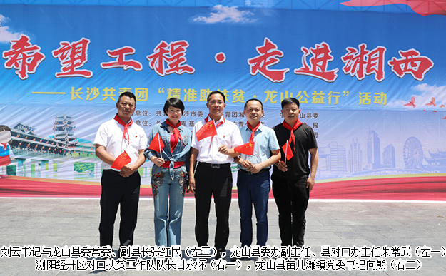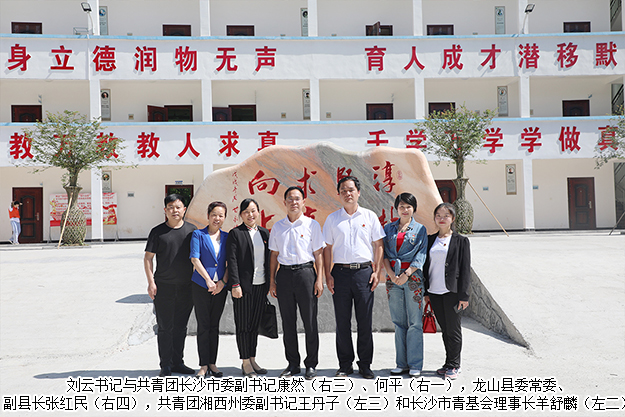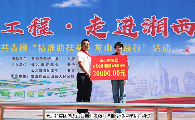 2019年5月21-23日,希望工程·走進(jìn)湘西——長沙共青團(tuán)“精準(zhǔn)助扶貧·龍山公益行”活動(dòng)在龍山縣苗兒灘鎮(zhèn)九年制學(xué)校舉行。共青團(tuán)長沙市委副書記康然、何平,長沙市直機(jī)關(guān)工委委員、宣傳部長陳國勝,共青團(tuán)湘西州委副書記王丹子,中共龍山縣委常委、縣人民政府副縣長張紅民,長沙市青基會(huì)羊舒麟等領(lǐng)導(dǎo)出席活動(dòng)。綠之韻集團(tuán)黨委書記劉云及愛心企業(yè)、社會(huì)愛心人士、受助學(xué)生代表等1000余人參加本次活動(dòng)。