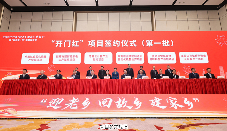 座談會的第二階段是“開門紅”項(xiàng)目簽約儀式,由長沙市人民政府副市長、市工商聯(lián)主席康鎮(zhèn)麟主持。活動集中簽約30個項(xiàng)目,總投資額207.15億元,涵蓋智能制造、總部經(jīng)濟(jì)、新型顯示、現(xiàn)代農(nóng)業(yè)、食品加工、醫(yī)藥健康等領(lǐng)域。胡國安董事長在簽約儀式現(xiàn)場表示,看到如此多的湘商帶著優(yōu)質(zhì)項(xiàng)目回歸家鄉(xiāng),深感振奮。這些項(xiàng)目的成功簽約不僅是湘商對家鄉(xiāng)的回饋,更是湖南營商環(huán)境不斷優(yōu)化、政策支持不斷加強(qiáng)的生動體現(xiàn)。他相信在政府和湘商的共同努力下,長沙的明天一定會更加美好。