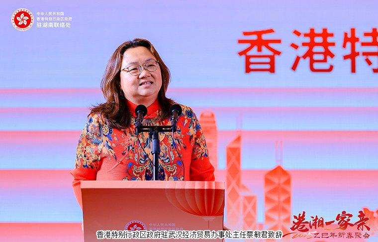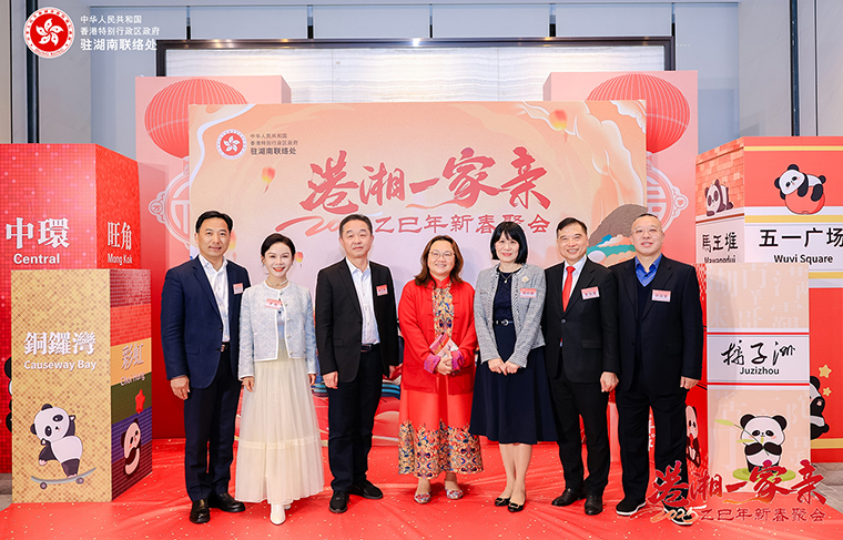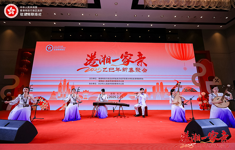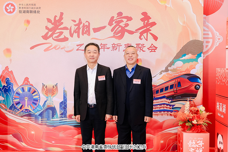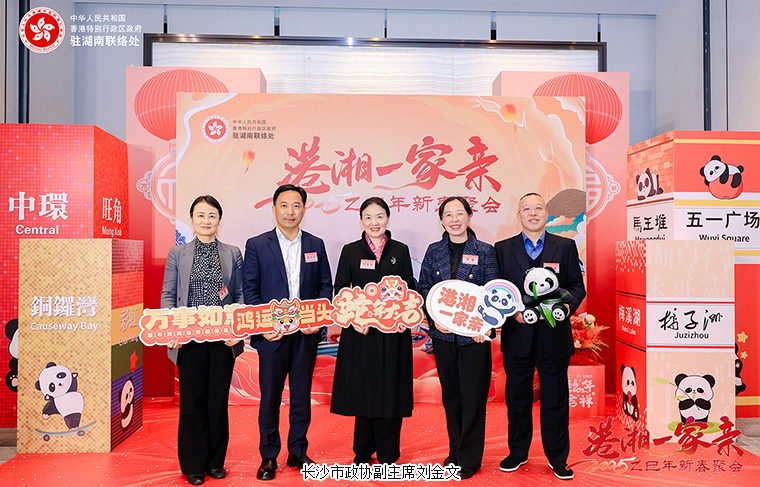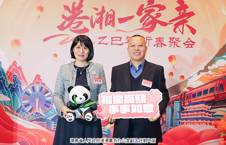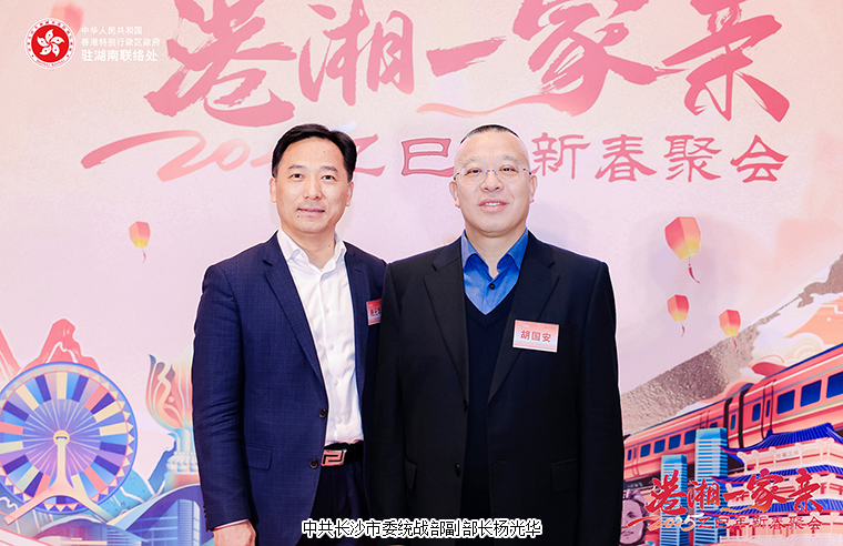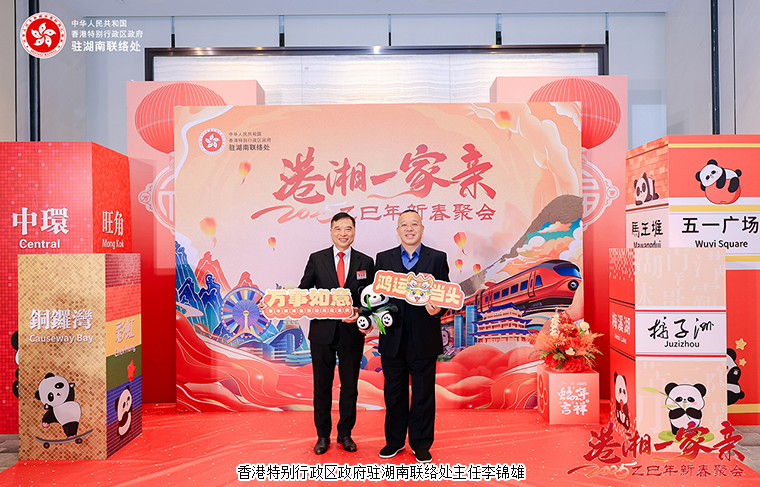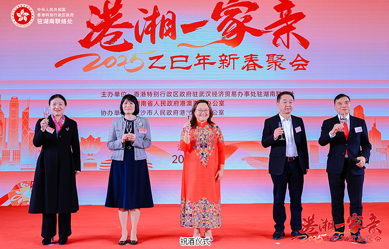 2025年2月25日,由香港特別行政區(qū)政府駐武漢經(jīng)濟(jì)貿(mào)易辦事處駐湖南聯(lián)絡(luò)處與湖南省人民政府港澳事務(wù)辦公室舉辦的“港湘一家親2025新春聚會(huì)”在湖南長沙市成功舉辦。香港特別行政區(qū)政府駐武漢經(jīng)濟(jì)貿(mào)易辦事處主任蔡敏君;中共湖南省委統(tǒng)戰(zhàn)部副部長、省政府僑辦主任劉衛(wèi)兵,湖南省人民政府港澳事務(wù)辦公室副主任郭向麗,中共湖南省委教育工委委員、省教育廳黨組成員余偉良,湖南省科技廳黨組成員、副廳長佟來,湖南省公安廳黨委委員、副廳長余良勇,湖南省出入境邊防檢查總站副總站長丁莉,湖南省商務(wù)廳黨組成員、副廳長劉素月,湖南省文旅廳黨組成員、副廳長龔鐵軍,中共湖南省委統(tǒng)戰(zhàn)部港澳臺(tái)處處長梁良,湖南省人民政府港澳事務(wù)辦公室港澳處處長黎沖;香港特別行政區(qū)政府駐湖南聯(lián)絡(luò)處主任李錦雄;長沙市政協(xié)副主席劉金文,中共長沙市委統(tǒng)戰(zhàn)部副部長、市僑辦主任楊光華,中共長沙市委統(tǒng)戰(zhàn)部港澳處處長趙敏等領(lǐng)導(dǎo)出席。香港湖南聯(lián)誼總會(huì)常務(wù)副會(huì)長、香港長沙聯(lián)誼會(huì)會(huì)長、綠之韻集團(tuán)董事長胡國安與在湘港人和港資企業(yè)代表等近200名來賓共聚一堂同賀新春。