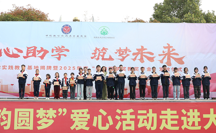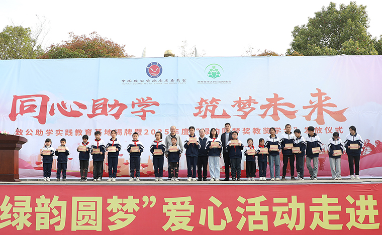 為營造濃厚的關心人才、尊重人才、支持人才以及愛學、勤學、好學、比學的濃厚氛圍,2023年,致公黨湖南省委會、湖南省綠之韻公益基金會“綠韻圓夢行動”捐贈50萬元愛心資金用于在安化大橋?qū)W校設立“獎教獎學金”,支持鄉(xiāng)村振興文化建設和教育事業(yè)發(fā)展。4月2日,致公助學實踐教育基地揭牌暨2025年度“綠韻圓夢獎教獎學金”發(fā)放儀式再次走進安化縣冷市鎮(zhèn)大橋?qū)W校,為鄉(xiāng)村教育注入了新的活力。
