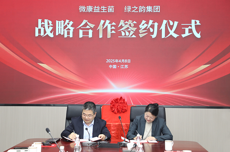 2025年4月8日,綠之韻集團-微康益生菌聯合實驗室簽約及揭牌儀式在蘇州成功舉行。微康益生菌創(chuàng)始人、首席科學家方曙光博士,江蘇省產業(yè)教授、微康益生菌研究院首席科學家、微康益生菌副總經理朱建國博士,微康益生菌研究院首席科學家蓋忠輝博士;綠之韻集團總裁勞嘉、總裁助理蔣文等領導嘉賓出席活動。未來,雙方將圍繞黃精益生菌功能性食品研發(fā)、技術創(chuàng)新、產業(yè)融合及資源共享展開深度合作,共同促進益生菌研究與產品開發(fā),實現最大協同效應,推動健康食品領域取得新突破。