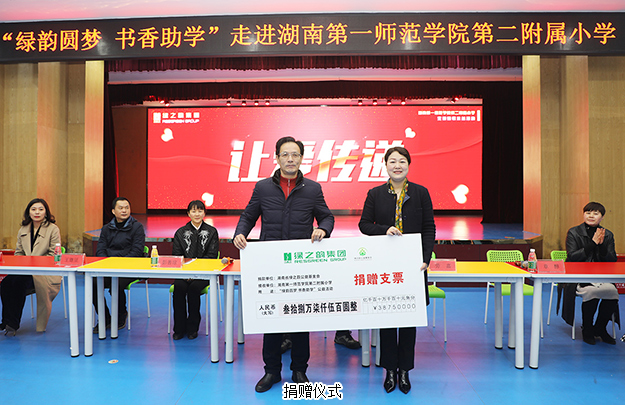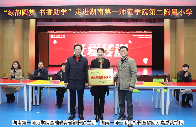 隨后,綠之韻集團(tuán)董事總裁、綠之韻公益基金會(huì)理事長(zhǎng)勞嘉講話。她首先向辛勤耕耘在教育一線的學(xué)校各位領(lǐng)導(dǎo)和老師致以崇高的敬意。她表示,“關(guān)愛生命、造福人類”是綠之韻一貫秉承的公益理念。十六年來,綠之韻先后捐贈(zèng)了12所希望學(xué)校,開展了“樹人行動(dòng)”“綠韻圓夢(mèng)·書香助學(xué)”“綠+兒童”“暖冬圓夢(mèng)”“關(guān)愛貧困母親”等一系列慈善公益活動(dòng),累計(jì)捐贈(zèng)款物6700多萬元,用實(shí)際行動(dòng)承擔(dān)企業(yè)責(zé)任。此次“綠韻圓夢(mèng)·書香助學(xué)”行動(dòng)走進(jìn)湖南第一師范學(xué)院第二附屬小學(xué),為學(xué)校教室捐建空調(diào)設(shè)備,既是為了給予學(xué)生以更好地教學(xué)環(huán)境,也是綠之韻對(duì)青少年教育事業(yè)關(guān)心和支持的生動(dòng)體現(xiàn)。她希望,學(xué)生們能懷抱一顆感恩之心,珍惜現(xiàn)在優(yōu)越的讀書環(huán)境,朝著更高的目標(biāo)不懈努力,以優(yōu)異的成績(jī)回饋社會(huì)。