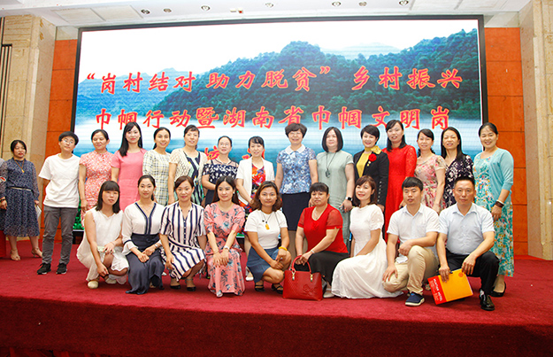 2018年6月27——28日,“崗村結(jié)對·助力脫貧”鄉(xiāng)村振興巾幗行動暨湖南省“巾幗文明崗”培訓班在郴州開班。湖南省婦聯(lián)黨組成員、副主席張媛媛,郴州市人民政府副市長賀建湘,湖南省婦聯(lián)婦女發(fā)展部部長陳敏,郴州市婦聯(lián)黨組書記、主席尹海蓮等領(lǐng)導與來自省直、各市州婦聯(lián)工作人員及婦女代表近300人參加學習。綠之韻集團黨委書記劉云受邀參加會議。