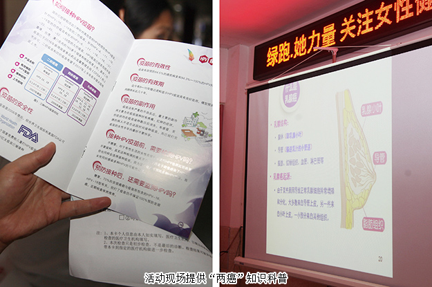 科普“兩癌”預防知識,傳播健康生活理念。為了加強廣大女性對“兩癌”的認識及防治意識,在益陽資陽區(qū)婦幼保健院,活動組委會特別邀請了婦科專家醫(yī)師給當?shù)剡m齡女性講解“兩癌”的相關知識與防治。專家醫(yī)師重點講述了“兩癌”的主要表現(xiàn)和一些日常預防措施和自我檢查方法,并根據(jù)臨床遇到的實際案例,生動地告訴到場女性什么是“兩癌”,如何預防“兩癌”以及“兩癌”檢查的重要性。同時,就大家關心的宮頸癌疫苗問題如宮頸癌疫苗的接種時機、接種年齡、接種疫苗后是否還要進行宮頸癌檢查做了詳細的講解。從益陽市各個社區(qū)趕來的婦女群眾們,手持免費檢查卡,右手腕上佩戴著為本次活動特別設計的、象征著“愛與健康”的紅綠色絲帶,臉上洋溢著燦爛的笑容,井然有序地排著隊進入診室進行檢查。幾位剛剛從診室里出來,做完檢查的女性群眾笑著說道:“醫(yī)生剛說啦,我身體好著呢,啥問題都沒有!”“以前如果我們要去醫(yī)院做檢查,既要預約又要花錢,很不方便?,F(xiàn)在可好了,不僅能夠免費檢查,還可以了解到很多健康知識。這是真正將實惠送到老百姓手上的大好事,真的太謝謝你們了!”