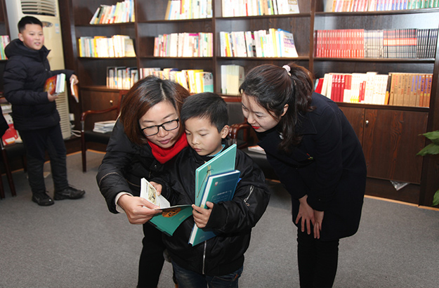 上午一大早,綠之韻志愿者們帶著家中的小朋友來(lái)到綠之韻黨建文化基地圖書(shū)室挑選書(shū)籍。綠之韻集團(tuán)董事總裁、綠之韻公益基金會(huì)理事長(zhǎng)勞嘉得知下午的活動(dòng)后,便來(lái)到圖書(shū)室與孩子們一起挑選適讀的書(shū)籍、畫(huà)冊(cè),為晨光中心的孤殘兒童送去最美好的祝愿。孩子們爭(zhēng)先恐后地向勞嘉總裁描述著自己挑選的書(shū)籍畫(huà)冊(cè),互相比拼著誰(shuí)挑選的書(shū)更有趣,誰(shuí)的書(shū)插畫(huà)更多,稚嫩童真的話語(yǔ)令現(xiàn)場(chǎng)志愿者們?nèi)炭〔唤?br/>