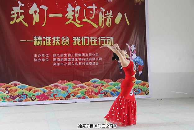今天的“我們一起過臘八”活動內(nèi)容豐富,形式多樣,有綠之韻集團(tuán)情感迸發(fā)的《精準(zhǔn)扶貧,我們在行動》朗誦,有充滿情懷的文藝歌舞《十送紅軍》,有精彩的獨(dú)舞節(jié)目《彩云之南》,有寓意十足的《精準(zhǔn)扶貧》小品,更有幫扶愛心企業(yè)與烏石村群眾互動配合游戲《愛的抱抱》。一個個精彩的節(jié)目,充分展示了大家昂揚(yáng)樂觀、積極進(jìn)取的精神風(fēng)貌,溫暖著小河鄉(xiāng)的每一個村民,也為烏石村、乃至全鄉(xiāng)精準(zhǔn)扶貧工作注入了新的活力。小河鄉(xiāng)在黨中央“脫貧攻堅(jiān)”春風(fēng)的吹拂下,在各級黨委政府的關(guān)心和幫助下,必將走向更加美好的明天!