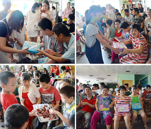 捐贈儀式上,綠之韻集團董事、總裁勞嘉與長沙彩虹孤殘兒童服務(wù)中心晨光中心主管肖鏡冰女士親切握手,并送上了愛心慰問金及捐贈物資。來自綠之韻志愿者的大小朋友們也為晨光中心的孩子們獻上了自己準備的禮物——玩具、圖書、畫筆等等。孩子與孩子之間的交流永遠是充滿美好而又單純的。不到半天的時間,孩子們便打成了一片,閱讀、繪畫,相互玩耍、游戲,現(xiàn)場成了一片歡樂的海洋。