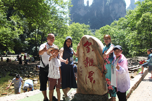 奇峰三千,秀水八百。見識過張家界的山峰峻峭,更不能錯過風(fēng)景秀麗的金鞭溪景區(qū)。行程的最后一天,綠之韻家人們來到被譽為“世界上最美麗的峽谷之一”的金鞭溪,溪畔花草鮮美,鳥鳴鶯啼,人沿清溪行,勝似畫中游。家人們欣賞著大自然贈與的美好,呼吸著天然氧吧里的新鮮空氣,感嘆著這次旅游的收獲與快樂,紛紛用手機將美好定格,舍不得結(jié)束這次美好的張家界之旅。