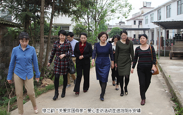 2017年4月18日,由湖南省婦聯(lián)、綠之韻集團(tuán)黨委、湖南省綠之韻公益基金會(huì)聯(lián)合主辦的“關(guān)愛(ài)貧困母親”愛(ài)心走訪活動(dòng)走進(jìn)瀏陽(yáng)市永安鎮(zhèn)。湖南省婦聯(lián)副主席盧妹香,湖南省婦女兒童發(fā)展基金會(huì)副理事長(zhǎng)兼秘書長(zhǎng)周萍,長(zhǎng)沙市婦聯(lián)副主席鐘小珍,長(zhǎng)沙市婦聯(lián)副縣級(jí)干部劉臘香,瀏陽(yáng)市婦聯(lián)主席龍花明,綠之韻集團(tuán)總裁、綠之韻公益基金會(huì)理事長(zhǎng)勞嘉,綠之韻集團(tuán)黨委書記劉云等參加本次活動(dòng),為患病的貧困母親送去溫暖與關(guān)懷。