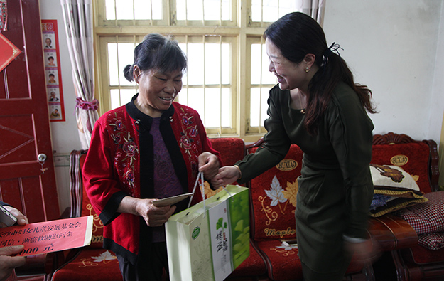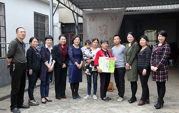 隨后,湖南省婦聯(lián)副主席盧妹香一行在勞嘉總裁的陪同下,來(lái)到瀏陽(yáng)市永安鎮(zhèn)平頭村、水山村愛(ài)心走訪患癌的貧苦母親,為她們送去愛(ài)心慰問(wèn)金和物品。