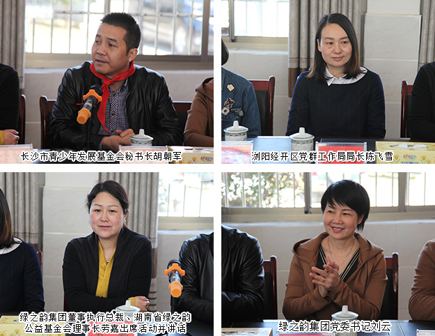 值此學(xué)雷鋒活動月之際,2017年3月2日,由長沙市青少年發(fā)展基金會、綠之韻集團(tuán)黨委、湖南省綠之韻公益基金會聯(lián)合主辦的“新春慰問之愛在小河鄉(xiāng)”愛心助學(xué)回訪活動在瀏陽市小河鄉(xiāng)烏石村小學(xué)舉行。長沙市青少年發(fā)展基金會秘書長胡朝軍,國家級瀏陽經(jīng)開區(qū)黨群工作局局長陳飛雪、副局長晏瓊,瀏陽經(jīng)開區(qū)團(tuán)委書記楊國理,綠之韻集團(tuán)董事執(zhí)行總裁、湖南省綠之韻公益基金會理事長勞嘉,綠之韻集團(tuán)黨委書記劉云等攜手綠之韻黨員、團(tuán)員代表及愛心志愿者,回訪慰問湖南省綠之韻公益基金會“綠韻圓夢·書香助學(xué)”項(xiàng)目于2016年幫扶的10名貧困學(xué)生,并為他們送上慰問品,延續(xù)愛心。