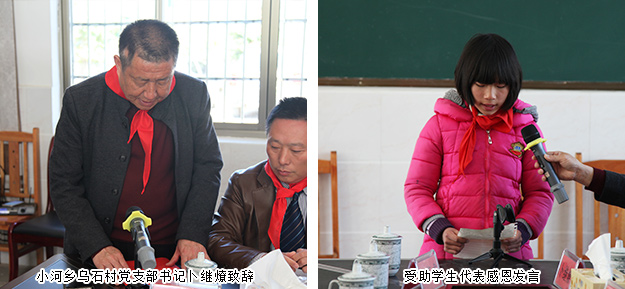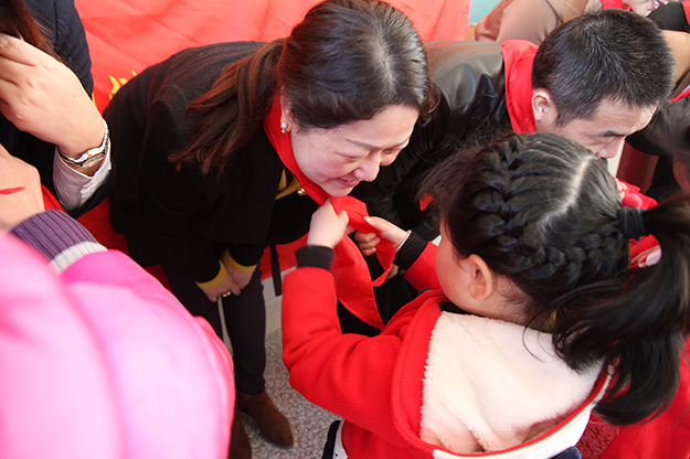 活動現(xiàn)場,孩子們?yōu)閰⑴c此次活動的領(lǐng)導(dǎo)及愛心志愿者們佩戴了紅領(lǐng)巾,以特殊的方式表達(dá)了他們的感激之情。會上,小河鄉(xiāng)烏石村黨支部書記卜繼燎首先致辭并對綠之韻集團(tuán)黨委、綠之韻公益基金會的愛心善行表示感謝。這次的回訪活動,不僅僅表達(dá)了一份關(guān)懷,更傳遞著一種美德,一種精神,一種力量。