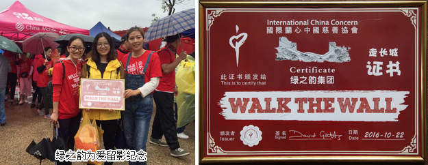 “走長城”公益活動(dòng)是國際關(guān)心中國慈善協(xié)會(huì)(簡稱ICC)創(chuàng)始人英國義工高永恩先生從2007年發(fā)起的,每年的金秋在加拿大、澳大利亞、英國、美國、新加坡、法國、愛爾蘭、荷蘭、中國香港、長沙、衡陽、三門峽的愛心義工們攜手為孤殘兒童行走。通過活動(dòng)籌集善款幫助有需要的孤殘兒童,讓孩子們有新的家,有愛、希望和機(jī)會(huì)。自2014年初,綠之韻集團(tuán)與ICC和孩子們結(jié)緣,胡國安董事長、勞嘉執(zhí)行總裁每年多次帶隊(duì)看望孩子們,并捐贈(zèng)善款用于ICC湖南的孤殘兒童合作項(xiàng)目。