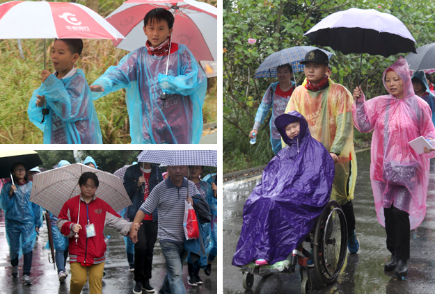 “愛使我們?cè)谝黄?,我們手拉手;愛是我們的回答,面?duì)挑戰(zhàn);希望是我們的祝福,手拉手、心相連,我們是一家人。”愛心志愿者們?nèi)宄扇?,沿著既定的線路徒步前行,大家或打著雨傘、或穿著雨衣,以眼神鼓勁,用微笑問候,憑借著堅(jiān)韌的意志和奉獻(xiàn)愛心的渴望,全部走完既定的環(huán)公園路程,安全返回,互致勝利的祝福,并合影紀(jì)念。