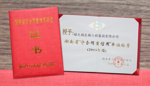 守合同、重信用的誠信經(jīng)營史,是綠之韻良性經(jīng)營、健康發(fā)展的企業(yè)之根本。十三年來,綠之韻始終秉承“和誠立信、競超興業(yè)”的發(fā)展理念,把“守合同、重信用”作為企業(yè)發(fā)展的生命線,持續(xù)推進企業(yè)誠信建設,致力于企業(yè)品牌打造。在經(jīng)營規(guī)模日漸攀升的同時,公司合同信用管理體系日益健全,保持經(jīng)營行為規(guī)范,履約狀況良好,經(jīng)營效益不斷提高,取得了慢發(fā)而先至的跨越式發(fā)展。獲評2015年度湖南省“守合同重信用單位”榮譽稱號,是對綠之韻集團守法經(jīng)營、依法納稅、講究信用、誠信經(jīng)營、品牌影響的充分肯定,綠之韻將一如既往,再接再厲,不斷提升企業(yè)誠信建設工作水平,努力為廣大消費者提供更加優(yōu)質(zhì)、滿意的產(chǎn)品和服務。