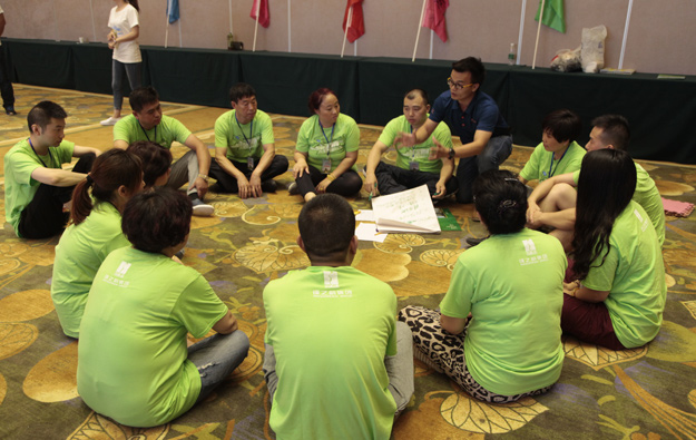 7月15日一整天都在快樂的互動游戲中度過,家人們邊玩邊學(xué),培訓(xùn)過程中及時厘清思維方式和行為方式。“大海撈針”的游戲當(dāng)中,學(xué)員們從茫然不知所從,到齊心協(xié)力找到方法一同思考,并肩作戰(zhàn),找到了團(tuán)隊分工合作的最佳方式;“眾志成城”的游戲中,家人們通過信任團(tuán)隊,所有人朝著一個目標(biāo)和方向努力,堅持再堅持,直到達(dá)到成功……每一項拓展活動中,隊員們互相幫助、相互配合、密切協(xié)作,家人們在盡情享受游戲帶來快樂的同時,進(jìn)一步增強(qiáng)了團(tuán)隊凝聚力、向心力,極大地激發(fā)了家人們的熱情。
