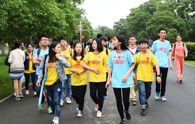 從橘子洲頭毛澤東青年藝術(shù)雕像處出發(fā),大家三五成群,沿著既定的線路徒步前行,相識(shí)的、不相識(shí)的,大家揮舞雙手,以眼神鼓勁,用微笑問(wèn)候,朝著一個(gè)共同的夢(mèng)想、共同的愛(ài)心、共同的追求邁進(jìn)。行走隊(duì)伍吸引了許多民眾的廣泛關(guān)注,民眾們自發(fā)自覺(jué)融入到愛(ài)心隊(duì)伍當(dāng)中。此次行走活動(dòng)途徑攬?jiān)峦?、橘洲客棧、?shī)詞碑、桃園等景點(diǎn),湘江兩岸風(fēng)光盡收眼底,沿途的歡聲笑語(yǔ)和美麗風(fēng)景讓大家忘記了行走的疲勞。