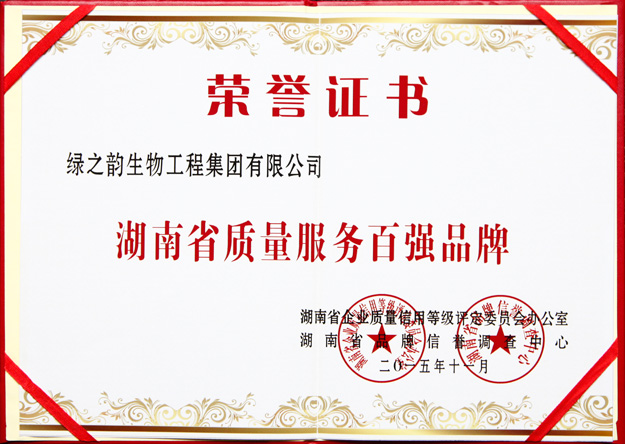 綠之韻集團榮膺“湖南省誠信企業(yè)”“湖南省質(zhì)量服務(wù)百強品牌”榮譽稱號