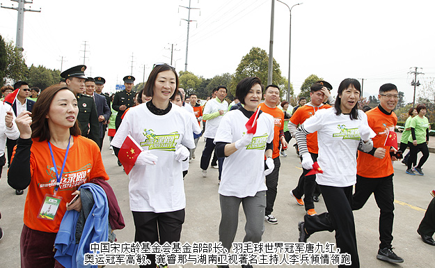 湖南省民政廳巡視員、湖南省慈善總會秘書長李勁夫,湖南省民政廳民間組織管理局副調(diào)研員鄂立輝,國家級瀏陽經(jīng)濟開發(fā)區(qū)管委員會主任郭力夫,中共瀏陽市委常委、市政府黨組副書記、常務(wù)副市長張作林,瀏陽經(jīng)濟開發(fā)區(qū)黨工委委員、工會聯(lián)合會主席胡漢圣蒞臨活動現(xiàn)場,中國宋慶齡基金會基金部部長、羽毛球世界冠軍唐九紅,奧運冠軍高敏、錢紅、王麗萍、龔睿那,湖南衛(wèi)視著名主持人李兵等明星大咖傾情助陣。綠之韻集團董事長胡國安,快樂汽車集團、快樂紅館傳媒董事長周曄,綠之韻集團董事執(zhí)行總裁勞嘉攜高管團隊、集團戰(zhàn)略委委員等,以及來自全國各地的2000多名綠之韻家人共同參與了此次活動,一起為愛奔跑,為健康中國加油!