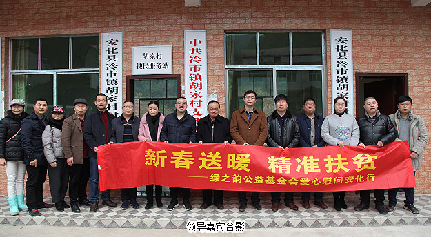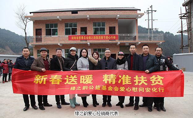 春節(jié)將至,鄉(xiāng)音裊裊,聊敘家鄉(xiāng)情;綠韻大愛,恩情悠悠,反哺桑梓心。2016年2月4日,安化縣政協(xié)主席李太源,中共安化縣委常委、政法委書記羅必勝,湖南省慈善總會(huì)副會(huì)長、綠之韻集團(tuán)董事長胡國安,湖南省慈善總會(huì)辦公室副主任劉謀益,湖南省志愿服務(wù)指導(dǎo)中心副主任蔣鐵陽,安化縣慈善總會(huì)辦公室主任肖晟,中共安化縣冷市鎮(zhèn)黨委書記周華山、鎮(zhèn)長楊鋒,綠之韻公益基金會(huì)秘書長蔣文及愛心志愿者代表等一行來到湖南省安化縣冷市鎮(zhèn)胡家村,為鄉(xiāng)親們送上慰問金、米、油和日用品等物資,為他們送去新春的祝福。湖南都市頻道、紅網(wǎng)、瀟湘晨報(bào)、安化電視臺(tái)等多家媒體對本次愛心慰問活動(dòng)進(jìn)行了報(bào)道。