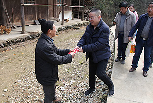 在胡家村村委干部的陪同下,湖南省慈善總會(huì)副會(huì)長、綠之韻集團(tuán)董事長胡國安,湖南慈善總會(huì)辦公室副主任劉謀益等一行先后來到該村特困鄉(xiāng)親家中,為每人送上慰問金,并與他們交談,了解他們的身體狀況和生活情況?!拔以诤掖遴l(xiāng)音中啟蒙,伴著改革開放長大,無論身在何方,都無法割舍我對生我養(yǎng)我的家鄉(xiāng)胡家村和淳樸鄉(xiāng)親們的深深思念和無限牽掛。綠之韻公司的發(fā)展和他個(gè)人的成功都離不開家鄉(xiāng)人民的支持和幫助,這樣的慰問和資助不會(huì)間斷。自己將繼續(xù)以奉獻(xiàn)愛心關(guān)注困難群體為己任,在自己力所能及的范圍內(nèi)盡量去幫助他人、回報(bào)桑梓,造福一方!”胡國安董事長幾句簡單而樸實(shí)的話語幾乎感動(dòng)了現(xiàn)場所有的人,其積極承擔(dān)社會(huì)責(zé)任,熱心公益事業(yè)的使命感和責(zé)任感,受到當(dāng)?shù)仡I(lǐng)導(dǎo)、群眾的交口稱贊和一致好評(píng)。