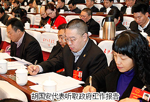 1月18日上午九時(shí),長沙市第十四屆人民代表大會(huì)第四次會(huì)議在長沙人民會(huì)堂隆重開幕。大會(huì)執(zhí)行主席易煉紅、胡衡華、袁觀清、劉新程、張建國、王國海、趙建強(qiáng)、黃佳惠、譚杭生、芮英姿、柳美景在主席臺(tái)前排就座。出席長沙市政協(xié)十一屆四次會(huì)議的全體委員,市委、市人大常委會(huì)、市政府各部門負(fù)責(zé)人,市中級(jí)人民法院、市人民檢察院負(fù)責(zé)人,市各民主黨派、工商聯(lián)、各人民團(tuán)體和有關(guān)單位負(fù)責(zé)人列席會(huì)議。湖南省政協(xié)委員、長沙市優(yōu)秀人大代表、綠之韻集團(tuán)董事長胡國安出席會(huì)議。