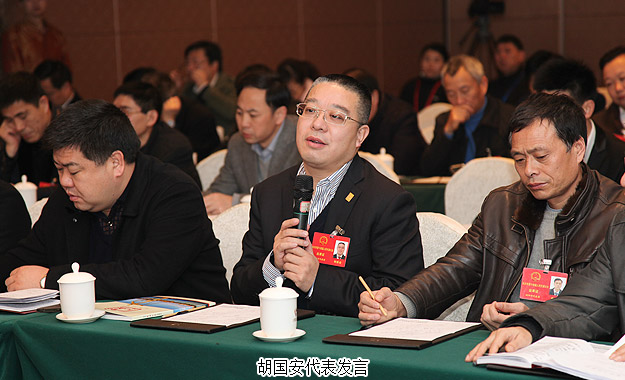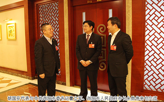 大會(huì)開幕式后,中共湖南省委常委、長沙市委書記易煉紅,長沙市委副書記、市長胡衡華,長沙市人大常委會(huì)主任袁觀清等來到代表駐地,看望參加長沙市十四屆人大四次會(huì)議的全體代表,鼓勵(lì)大家暢所欲言、獻(xiàn)計(jì)獻(xiàn)策。胡國安代表與各位領(lǐng)導(dǎo)、代表座談時(shí)發(fā)言,“在今年的政府工作報(bào)告中,市委市政府始終圍繞“創(chuàng)新、協(xié)調(diào)、綠色、開放、共享”八個(gè)字做文章,尤其是關(guān)于民生、精準(zhǔn)扶貧的篇幅很大,讓人倍感務(wù)實(shí)和與時(shí)俱進(jìn),給人很強(qiáng)的信心。市委市政府著力推進(jìn)瀏陽河生態(tài)經(jīng)濟(jì)帶建設(shè)的整體思路與綠之韻集團(tuán)的綠色、生態(tài)經(jīng)濟(jì)發(fā)展思路,以及在瀏陽河與撈刀河畔建立生態(tài)休閑園、建立五星級(jí)生態(tài)酒店等未來發(fā)展規(guī)劃不謀而合,這充分體現(xiàn)了市委市政府決策的前瞻性和綠之韻規(guī)劃的正確性。同時(shí),這次會(huì)議在承前啟后的特殊時(shí)期召開,可謂意義特別重大。如何謀劃好‘十三五’發(fā)展,實(shí)現(xiàn)好‘十三五’的精彩開局和開門紅,是我們所有人大代表十分關(guān)切、十分關(guān)心的問題。綠之韻集團(tuán)將緊緊團(tuán)結(jié)在市委、市政府周圍,搶抓機(jī)遇,加快發(fā)展,為努力建設(shè)能量更大、實(shí)力更強(qiáng)、城鄉(xiāng)更美、民生更爽的長沙,貢獻(xiàn)自己應(yīng)有的力量!”