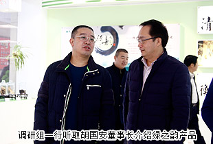 調(diào)研組一行首先參觀了綠之韻集團大樓,聽取了胡國安董事長對綠之韻系列產(chǎn)品、集團總部辦公區(qū)、企業(yè)資質(zhì)和榮譽展示區(qū)的介紹。綠之韻“以產(chǎn)品為導(dǎo)向的體驗式營銷模式”和“移動互聯(lián)網(wǎng)+直銷”的發(fā)展戰(zhàn)略,優(yōu)質(zhì)的產(chǎn)品研發(fā)體系、產(chǎn)學(xué)研合作模式以及良好的企業(yè)形象得到了考察組各位領(lǐng)導(dǎo)的高度認(rèn)可和贊譽。