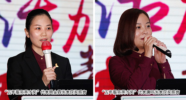 表彰是鼓勵(lì),是鞭策,更是一路前行的里程碑。“五年服務(wù)英才獎(jiǎng)”代表周金霖、唐鳴巾幗不讓須眉,將她們從業(yè)以來的優(yōu)秀經(jīng)驗(yàn)毫無保留的分享給全體員工,并且告訴大家要始終以一顆感恩的心、積極奮進(jìn)的心態(tài)投入到工作中,并且秉持信念不斷付出行動(dòng),必將得到不僅是物質(zhì)上、更是精神上的大回報(bào);“十年服務(wù)忠誠獎(jiǎng)”代表王薇就專業(yè)度,服務(wù)意識(shí)、行動(dòng)的力量為大家進(jìn)行了專業(yè)深度的分享。全體員工聆聽優(yōu)秀員工的精彩分享,讓個(gè)人智慧凝結(jié)成綠之韻全體的共同力量。