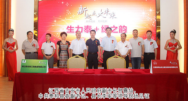 為更好地實(shí)現(xiàn)綠之韻大健康產(chǎn)業(yè)規(guī)劃,加速全球化大健康產(chǎn)業(yè)圈建設(shè)步伐,以更加優(yōu)質(zhì)、卓越的產(chǎn)品服務(wù)廣大消費(fèi)者,2015年8月30日,綠之韻集團(tuán)與江西井岡山生力泰生物科技有限公司簽署戰(zhàn)略合作協(xié)議,成立江西省綠韻生力靈芝生物科技有限公司,綠之韻靈芝種植生產(chǎn)基地正式落戶革命根據(jù)地井岡山。此舉,宣告綠之韻創(chuàng)建以中華五千年養(yǎng)生文化為基石的全球化大健康產(chǎn)業(yè)圈規(guī)劃再次邁出重要的一步。江西省吉安市人民政府副市長(zhǎng)賀喜燦,中共泰和縣委副書(shū)記、縣長(zhǎng)李軍,中共泰和縣委副書(shū)記劉云峰,中共泰和縣委常委、副縣長(zhǎng)繆丹,中共泰和縣委常委李艷輝,泰和縣工商局局長(zhǎng)胡列成,綠之韻集團(tuán)董事長(zhǎng)胡國(guó)安,綠之韻集團(tuán)(中國(guó)區(qū))副總經(jīng)理(全球營(yíng)銷中心)、國(guó)際商學(xué)院執(zhí)行院長(zhǎng)孫心琥,井岡山生力泰公司董事長(zhǎng)莫小毛,井岡山生力泰公司運(yùn)營(yíng)中心總裁郭大林等親臨簽約儀式現(xiàn)場(chǎng),共同見(jiàn)證這一重要?dú)v史性時(shí)刻。
