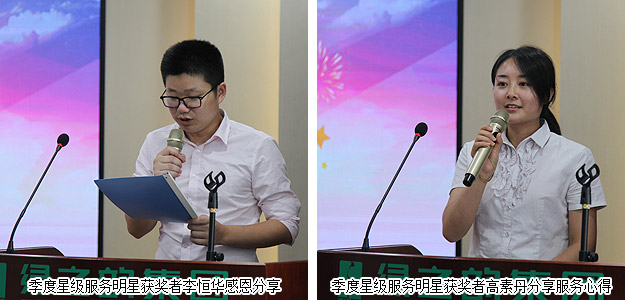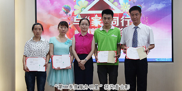 2015年新晉員工在大會(huì)上進(jìn)行了自我介紹和風(fēng)采展示,彰顯出新人積極向上的精神面貌。同時(shí),大會(huì)還對(duì)表現(xiàn)優(yōu)秀的員工和集體給予了隆重表彰:業(yè)務(wù)服務(wù)部、數(shù)據(jù)管理中心、產(chǎn)品綜合管理部、山東分公司、儲(chǔ)運(yùn)部榮獲“第二季度優(yōu)秀服務(wù)集體”;侯俊霞、李恒華、王艷、譚紅、陳建輝、李倩婷、王芬、高素丹、夏丹、曹峰、盧再林、劉圣雄、趙光意等十多位員工光榮成為“第二季度服務(wù)明星”;夏運(yùn)良、王芬、王壯在黨支部的領(lǐng)導(dǎo)下,積極參與黨組織各項(xiàng)活動(dòng),榮獲“綠之韻黨支部優(yōu)秀共產(chǎn)黨員”稱號(hào)。獲獎(jiǎng)部門代表、個(gè)人依次踏上領(lǐng)獎(jiǎng)臺(tái),享受大家的聲聲祝福和熱烈掌聲,分享快樂和喜悅。