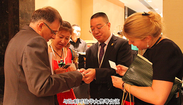 2015年6月20日—6月28日,比利時(shí)國王菲利普及馬蒂爾德王后訪華。在為期八天的訪問行程中,國王夫婦進(jìn)行了一系列官方、商務(wù)、文化和學(xué)術(shù)活動(dòng)。23日,國家主席習(xí)近平在人民大會(huì)堂東門外廣場舉行歡迎儀式,歡迎菲利普國王一行。本次陪同出訪的有比利時(shí)外交大臣、3位比利時(shí)地區(qū)首席大臣,還包括比利時(shí)企業(yè)、高校、媒體等重要代表。24日“投資比利時(shí)”研討會(huì)在北京金融街威斯汀大酒店二層盛大召開。比利時(shí)國王菲利普先生、商務(wù)部副部長王受文先生、比利時(shí)—中國經(jīng)貿(mào)委員會(huì)主席Dewit Bernard先生出席并分別致詞。綠之韻集團(tuán)董事長胡國安受比利時(shí)駐華大使館邀請出席本次會(huì)議。