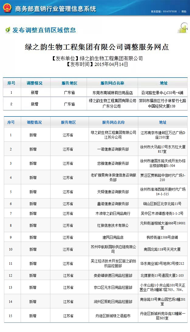 綠之韻獲國(guó)家商務(wù)部批準(zhǔn),新增廣東省、江蘇省直銷區(qū)域