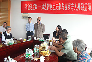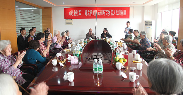 窗外的天空涼風(fēng)漸起,而窗內(nèi)的氣氛卻熱情洋溢,在綠之韻的3樓會(huì)議室里,“致敬老紅軍——綠之韻黨團(tuán)支部與百歲老人共迎重陽”的座談會(huì)正活躍而熱烈地進(jìn)行著。勞嘉副總裁首先作了摯情發(fā)言:“值此國(guó)慶前夕,重陽來臨之際,湖南省軍區(qū)東湖干休所的老紅軍、老干部,以及瞿所長(zhǎng)、謝政委等各位軍官同志蒞臨綠之韻集團(tuán)參觀、指導(dǎo),是我們無上的榮耀,語言不足以表達(dá)我們無比激動(dòng)、感動(dòng)的心情,我謹(jǐn)代表綠之韻全體領(lǐng)導(dǎo)及員工,向在座各位老前輩們致以崇高的敬意,你們辛苦了!”并向大家介紹了綠之韻集團(tuán)所秉持的理念與精神,以及從2006年建設(shè)黨團(tuán)支部至今所開展的一系列慈善幫扶活動(dòng),得到了在座老前輩們的一致嘉許與肯定。