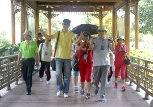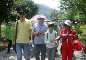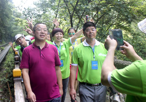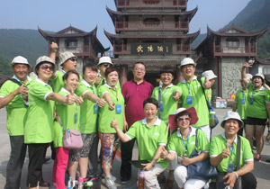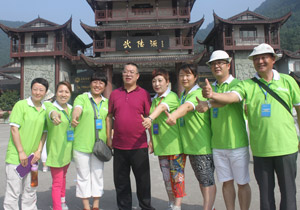 第二天,最讓伙伴們感動(dòng)的是:伙伴們正準(zhǔn)備挺進(jìn)武陵源景區(qū)大門(mén)時(shí),突然見(jiàn)到尊敬的胡國(guó)安董事長(zhǎng)頂著炎炎烈日、大汗淋漓、在百忙之中走到我們中間,與所有伙伴一起游覽十里畫(huà)廊,并一一合影留念。胡董事長(zhǎng)說(shuō):“爬山好比我們綠之韻事業(yè),開(kāi)始會(huì)有很多的憧憬、愿望、懷疑、憂慮,當(dāng)我們一步一個(gè)腳印前進(jìn)時(shí),發(fā)現(xiàn)在前行的過(guò)程中有很多美麗的風(fēng)景、可愛(ài)的伙伴,但是,也會(huì)遇到恐懼、坎坷。在這過(guò)程中,有鼓勵(lì)你的人、也有打擊的人,關(guān)鍵是自己的毅力與耐力是否能戰(zhàn)勝自己。不管怎樣,我愿意陪伴大家一起走向成功的頂峰?!焙麻L(zhǎng)真是太神奇了,他之前的一番話,伙伴們?cè)谂郎竭^(guò)程中幾乎全部遇到了。當(dāng)伙伴們爬過(guò)一個(gè)小山丘時(shí),有人開(kāi)心的不得了,尤其是站在山腰往下看到美麗的山與大樹(shù)時(shí)更是欣喜若狂。大家鼓足勇氣,一鼓作氣爬到了頂峰,每個(gè)人的臉上都露出了勝利與幸福的笑容!