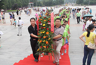 第二站是毛澤東銅像廣場(chǎng)。毛澤東銅像在廣場(chǎng)的正中間巍然矗立,身著中山裝,面朝東南方,胸前掛著“主席”證,手里握著一卷文稿,面帶微微笑意,目光炯炯有神,正視這正前方。銅像的大理石基座正面,鐫刻著“毛澤東同志”五個(gè)貼金大字。廣場(chǎng)上人山人海,來(lái)自祖國(guó)各地、五湖四海的人們不約而同匯聚在偉人腳下。各色花籃,虔誠(chéng)鞠躬,深情仰望,每個(gè)人都自發(fā)自覺(jué)的用自己的方式懷念著這位偉大的無(wú)產(chǎn)階級(jí)革命家,壯志成城的政治家,永垂不朽的理論家。 全球營(yíng)銷中心(中國(guó)區(qū))常務(wù)副總經(jīng)理諶獻(xiàn)軍、國(guó)際商學(xué)院執(zhí)行院長(zhǎng)孫心琥、帶領(lǐng)著營(yíng)銷精英們整齊有序排好隊(duì)列,懷著無(wú)比敬仰與懷念,給毛澤東銅像敬獻(xiàn)了美麗的花籃,并恭敬地給毛澤東銅像三鞠躬,然后緩緩地從左往右圍繞毛澤東銅像走了一周,以表達(dá)我們對(duì)一代偉人的深深摯情。